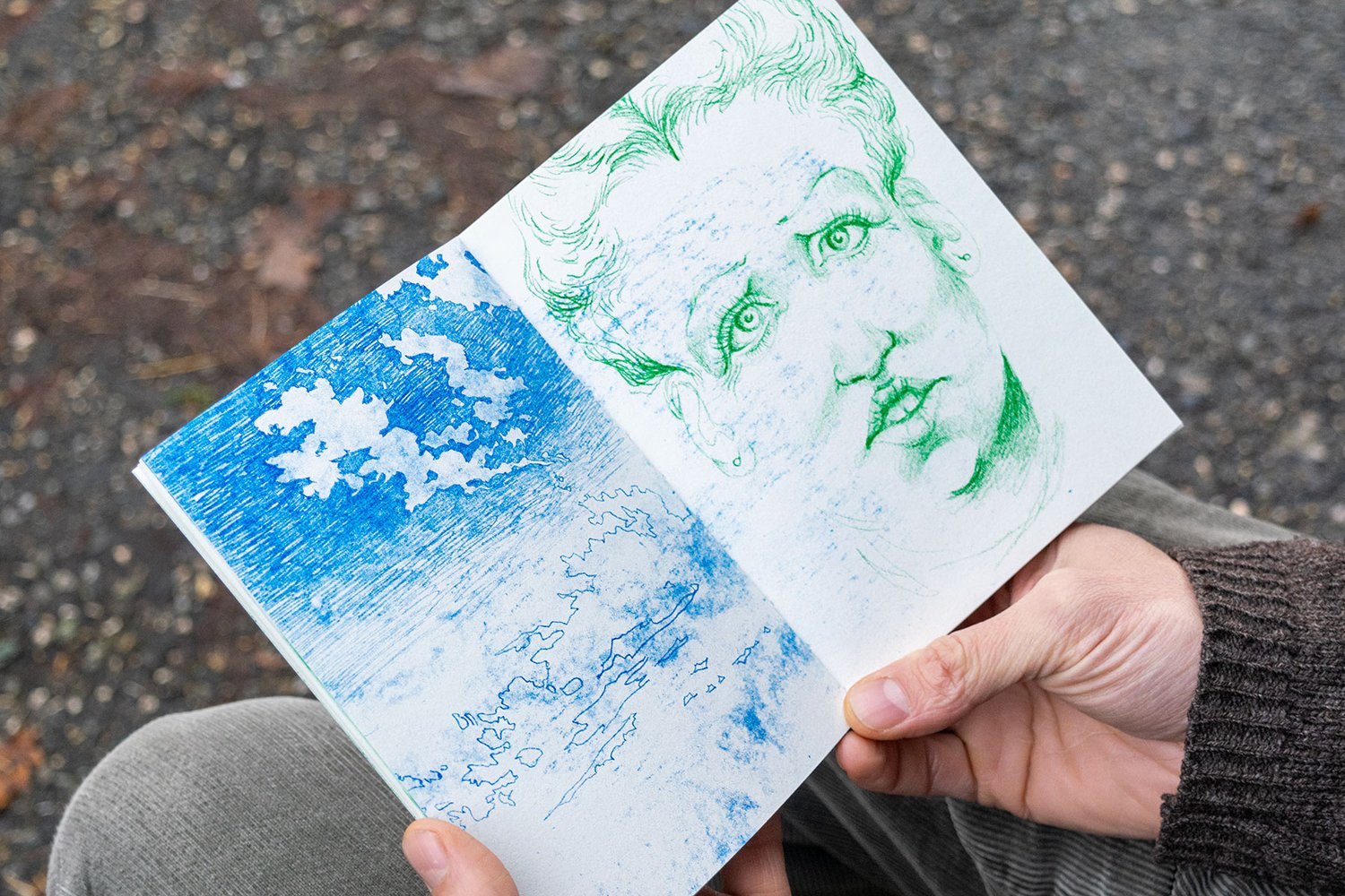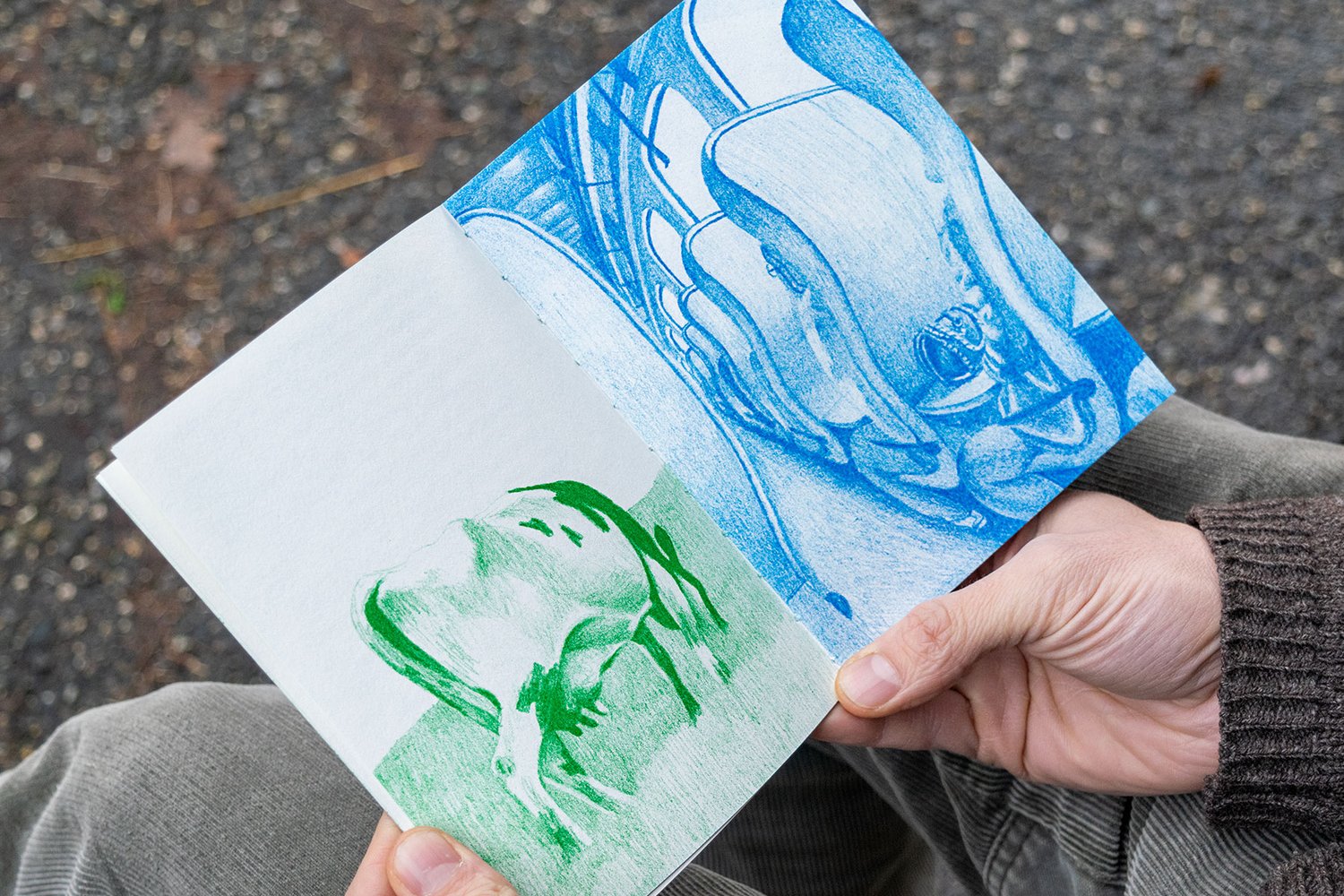 Le livre, imprimé au Cric en deux couleurs, est réalisé avec la technique de la risographie – une première pour le collectif avec cette technique.
